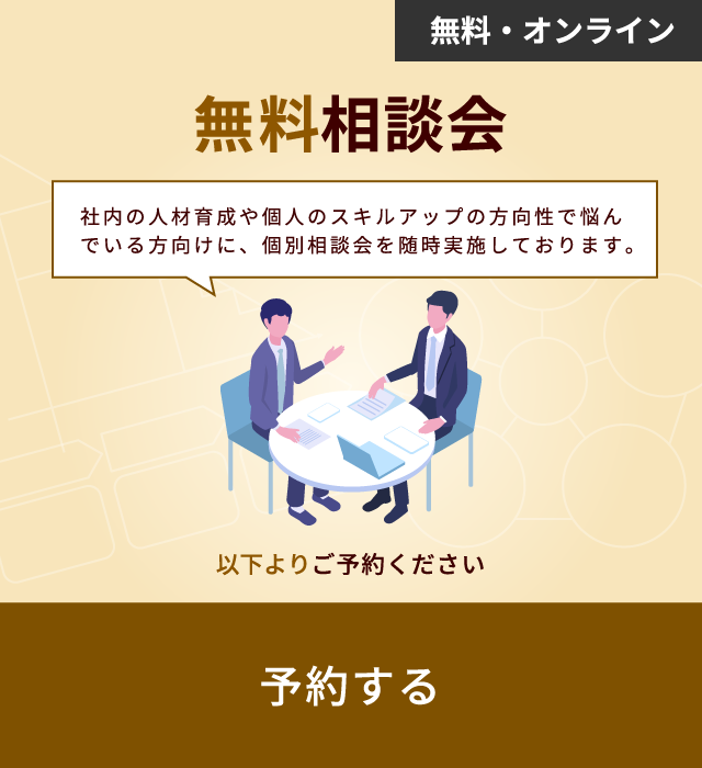 また、社内の人材育成(リスキリング)・個人のスキルアップなどでお悩みの方向けに、個別相談会を随時実施しております。どちらも無料・オンラインでご参加頂けます。